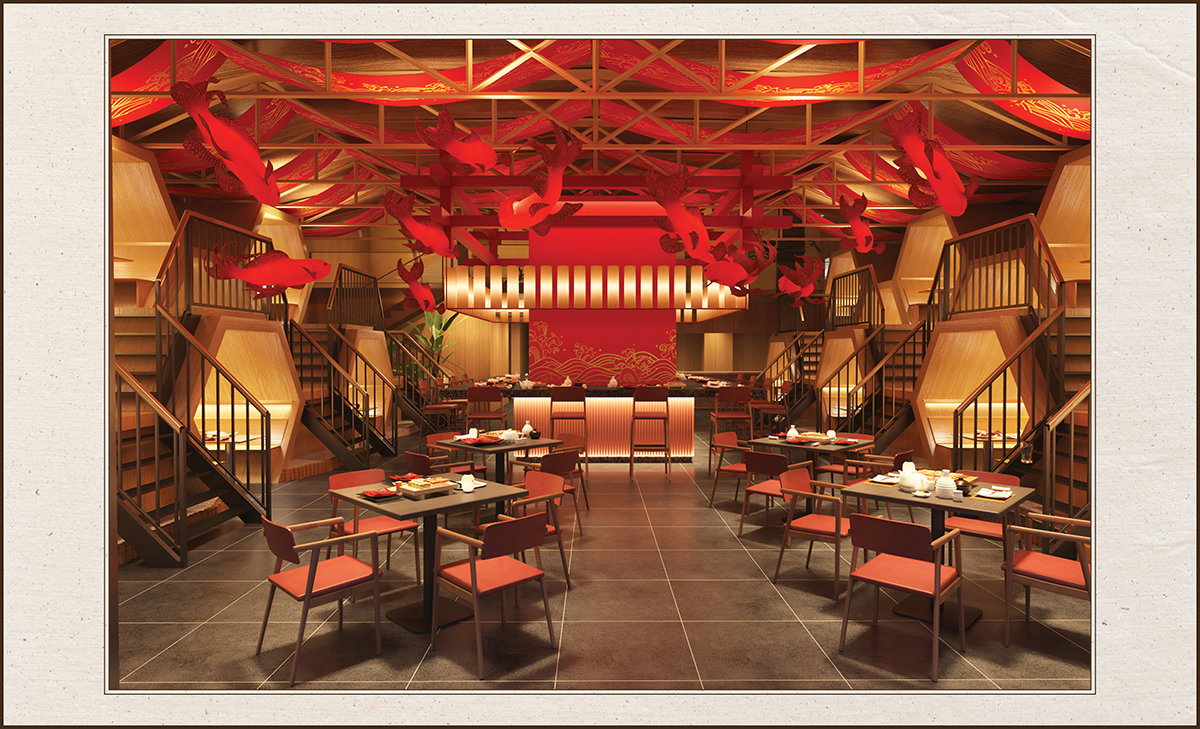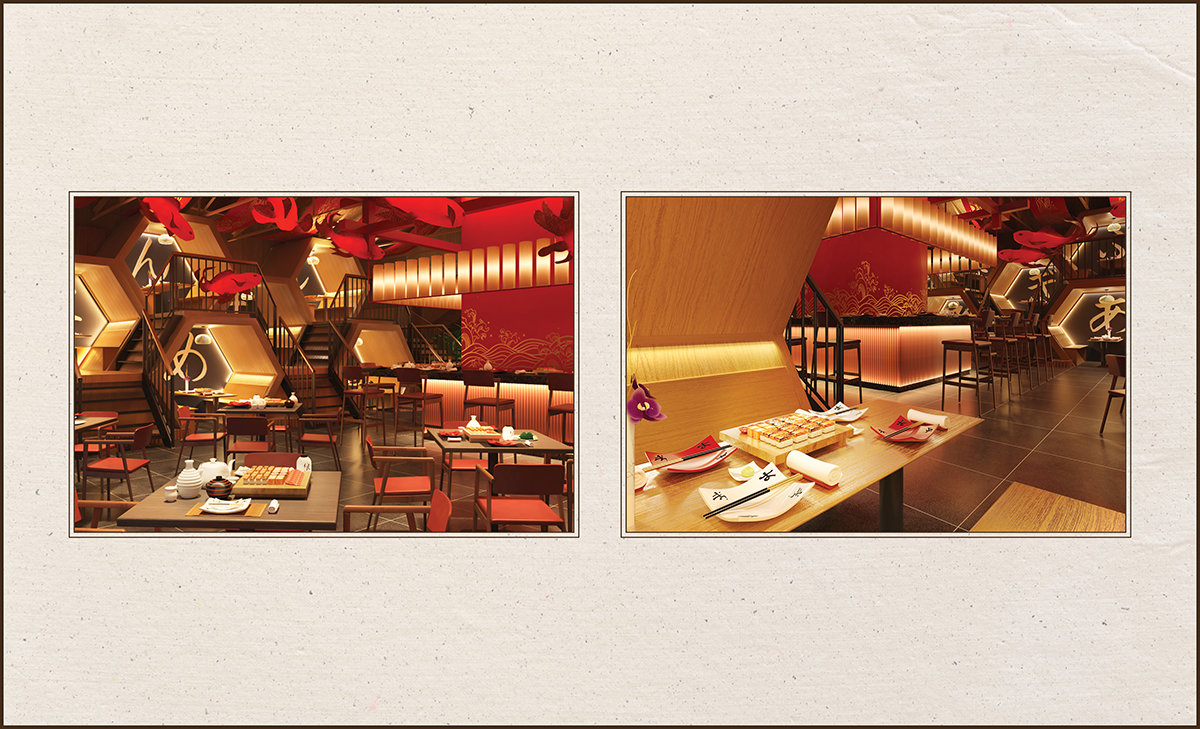 A continuous sliding glass storefront opens the interior directly to the street—dissolving the boundary between inside and out.