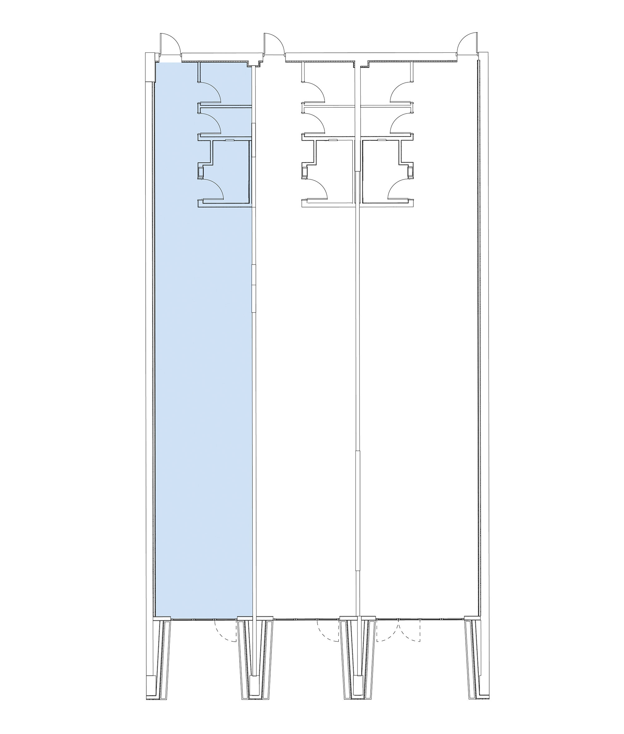 Floor-to-ceiling glazing, individual entrances and improved street interaction increase visibility, accessibility and engagement at the pedestrian level.